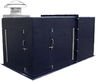 Fiberglass and Steel Complete Blower Acoustic Sound Enclosures, Custom designed and fabricated for Blowers, Air Compressors, Positive Displacement Blowers, Turbines, and Pumps. Available in Fiberglass, Steel, Stainless Steel. Noise reduction capabilities up to -30 dBA at 5 Ft from Housing Radiated Noise Levels.