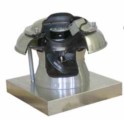 Small High Efficiency, Compact Roof Mounted Roof Mounted Fans for small building or utility room exhaust, low maintenance and compact, available with UL 705 Rating, good up to 3,100 CFM.