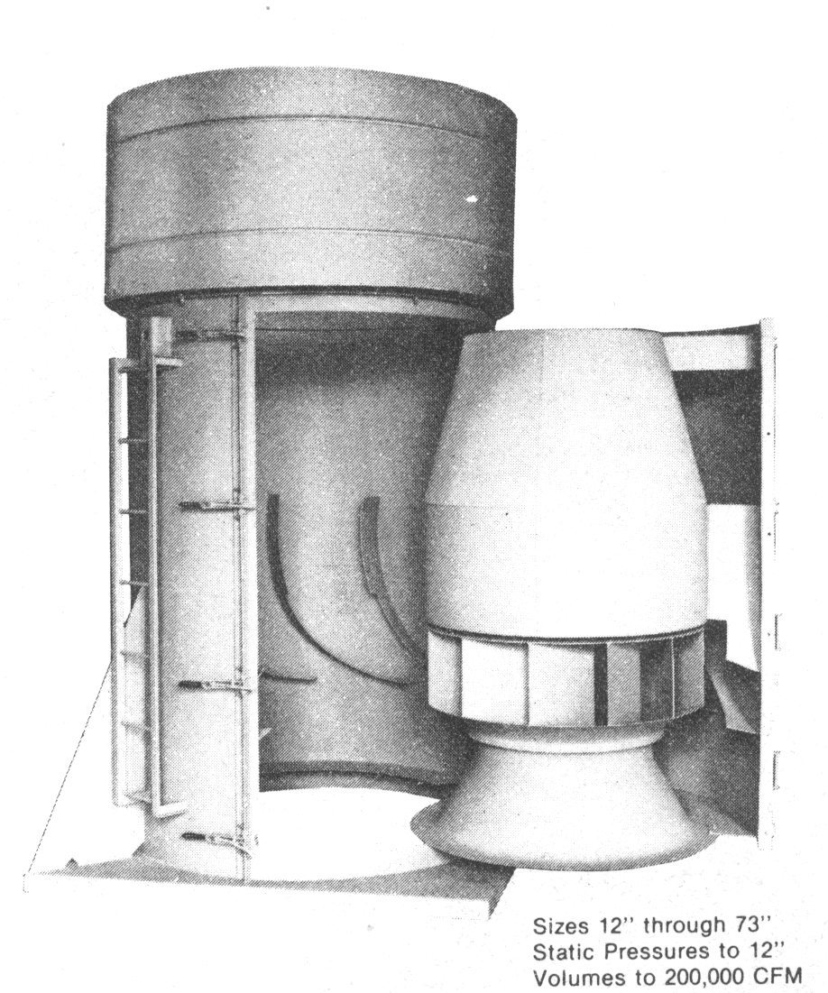 Swingout design fans enable routine cleaning and maintenance· operations to be performed without removing the fan from the system. This is accomplished by hinging the casing and allowing the fan internals to "swingout" with the hinged section while the casing remained attached to the ductwork. By providing quick and easy access to all internal pares, including the motor, shaft, wheel, and bearings, maintenance is greatly simplified and costly downtime is minimized.