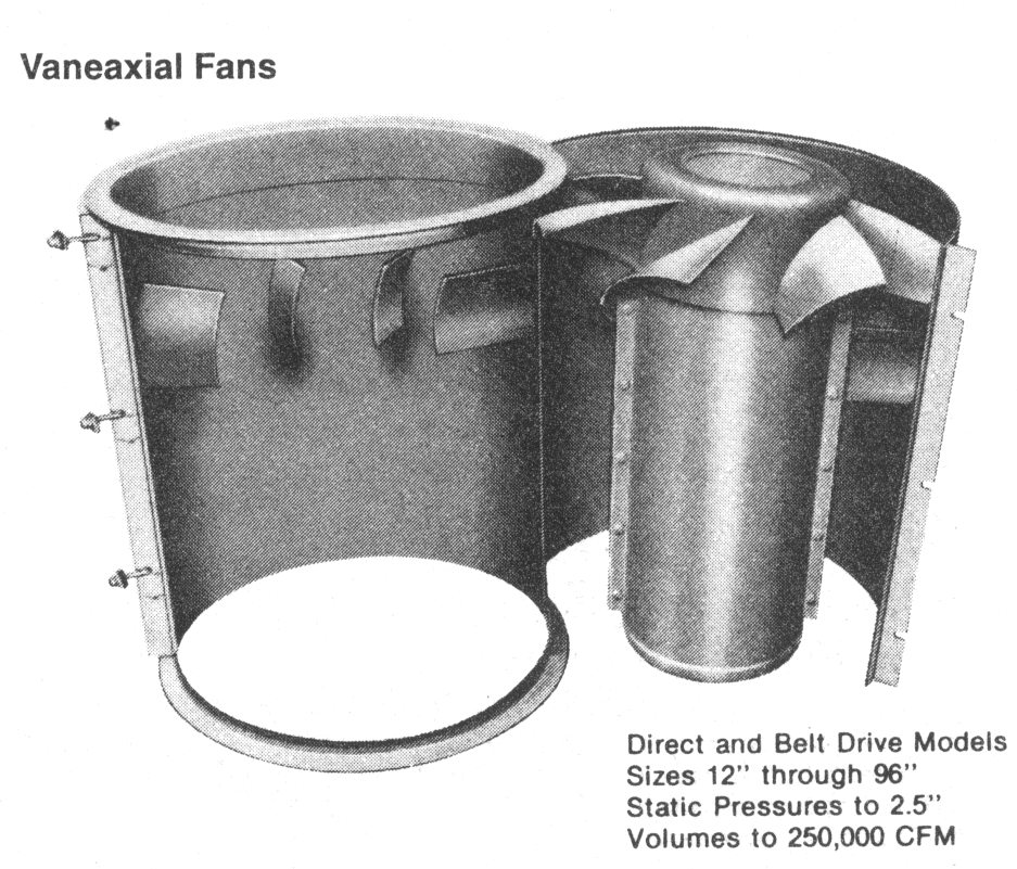 Custom Axial Fans, Vaneaxial, Tubeaxial, and Tubular Centrufugal Blowers.